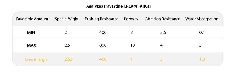Targh travertine has bright cream color background. It is widely consumed in construction at an affordable price. It can be cut & carved in a variety of shapes such as vein cut, cross cut, semi-rubbed, polished, guillotine, antiques & so on. It’s a good substitute for Hajiabad travertine due to its high similarity & reasonable price.